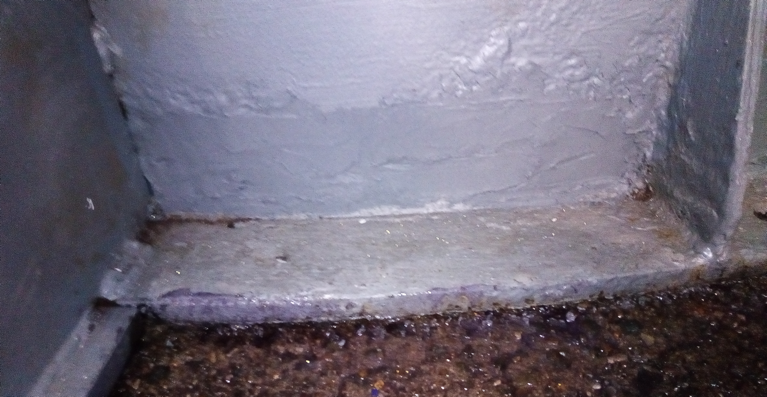Ci-dessous : 3 étapes de réparation d’un pied de jupe sur dalle béton